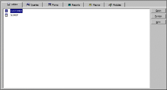 Creating a table by building the structure and saving the table is the first step in a two-step process. The second step is to add records to the table. In order to add records to a table, the table must first be open. To open a table, select the table in the Database window (see figure 6) and choose the Open button.