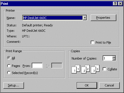 After changing the orientation, click the OK button and print the table by either selecting Print from the File menu or by clicking on the Print icon, which is third from left on the toolbar. The report in figure 10 should be printed.