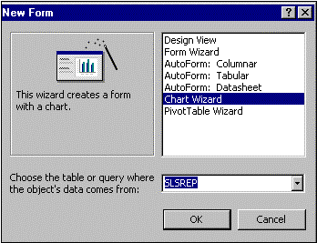 17.2 A New Form dialog box should be displayed. Click the Chart Wizard and the down arrow in the Choose the table or query where the object’s data comes from: list box.