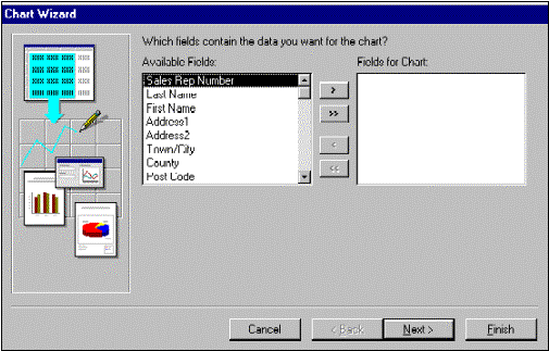 17.4 Click the OK button and then select the Sales Rep Number and click the Add Field button. Perform a similar task by clicking and adding the Sales field (see figure 15).